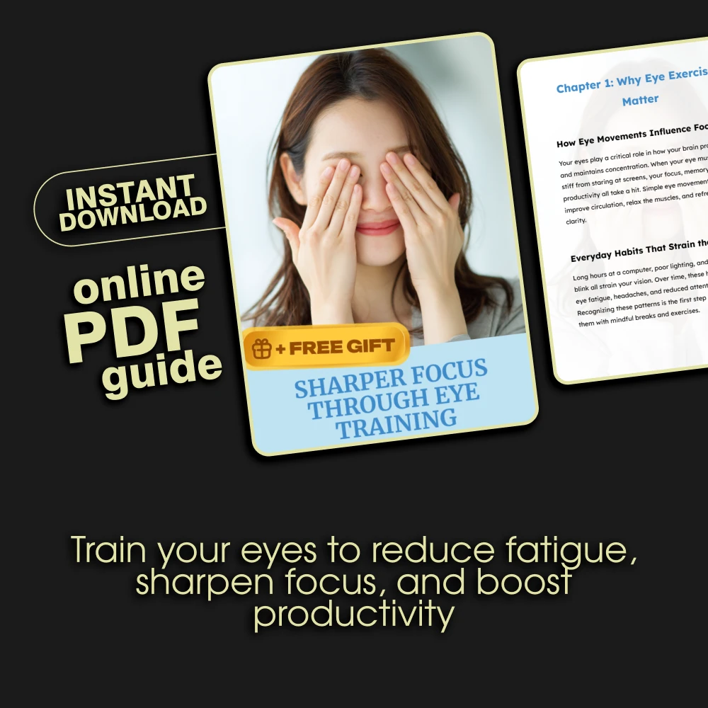 Don’t let another day go by feeling drained and distracted. This digital guide is available for immediate download after your purchase. No waiting for shipping, no extra costs—just instant access to the techniques that will transform your focus and reduce eye strain. Click ‘Add to Cart’ now and take the first step towards a clearer, more focused tomorrow!