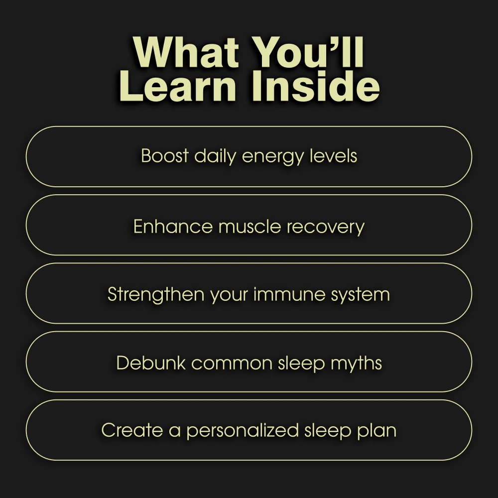 - Chapter 1: Why Sleep Matters for Your Body – Dive into the science of sleep, understand your sleep stages, and learn exactly how rest supports your recovery, immunity, and longevity.