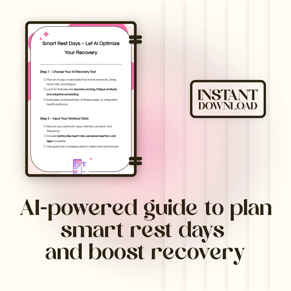 Give your body the recovery it truly deserves with Smart Rest Days – Let AI Optimize Your Recovery, a practical digital checklist designed to make rest scheduling smarter, not harder. Whether you’re a fitness enthusiast, a weekend warrior, or an athlete striving for peak performance, this guide shows you exactly how to use AI tools for scheduling rest days so you can recover faster, prevent injuries, and boost your results. Instead of guessing when to take a break, let technology guide your recovery with science-backed recommendations.