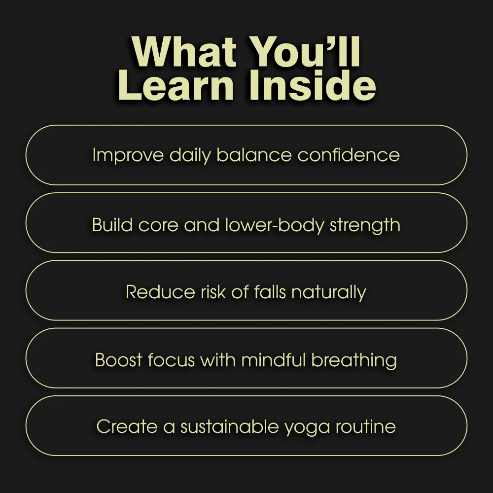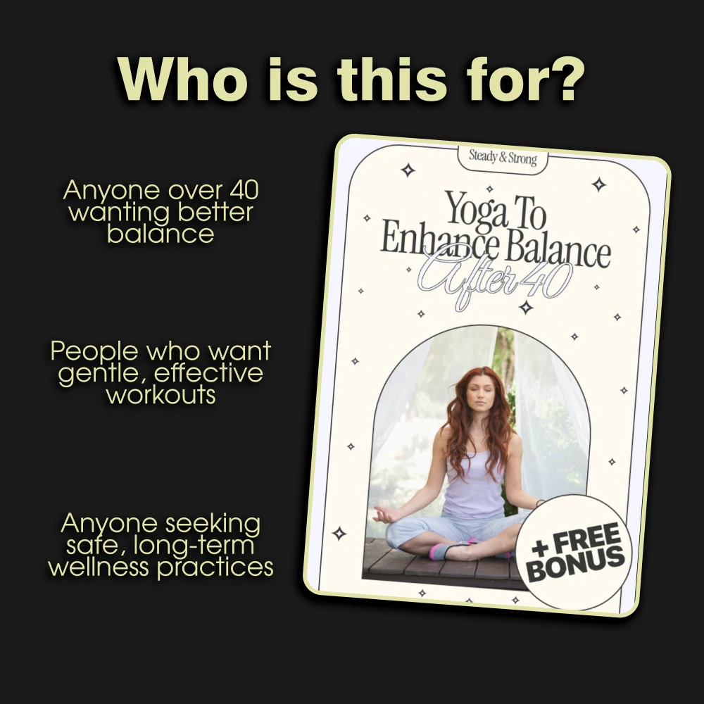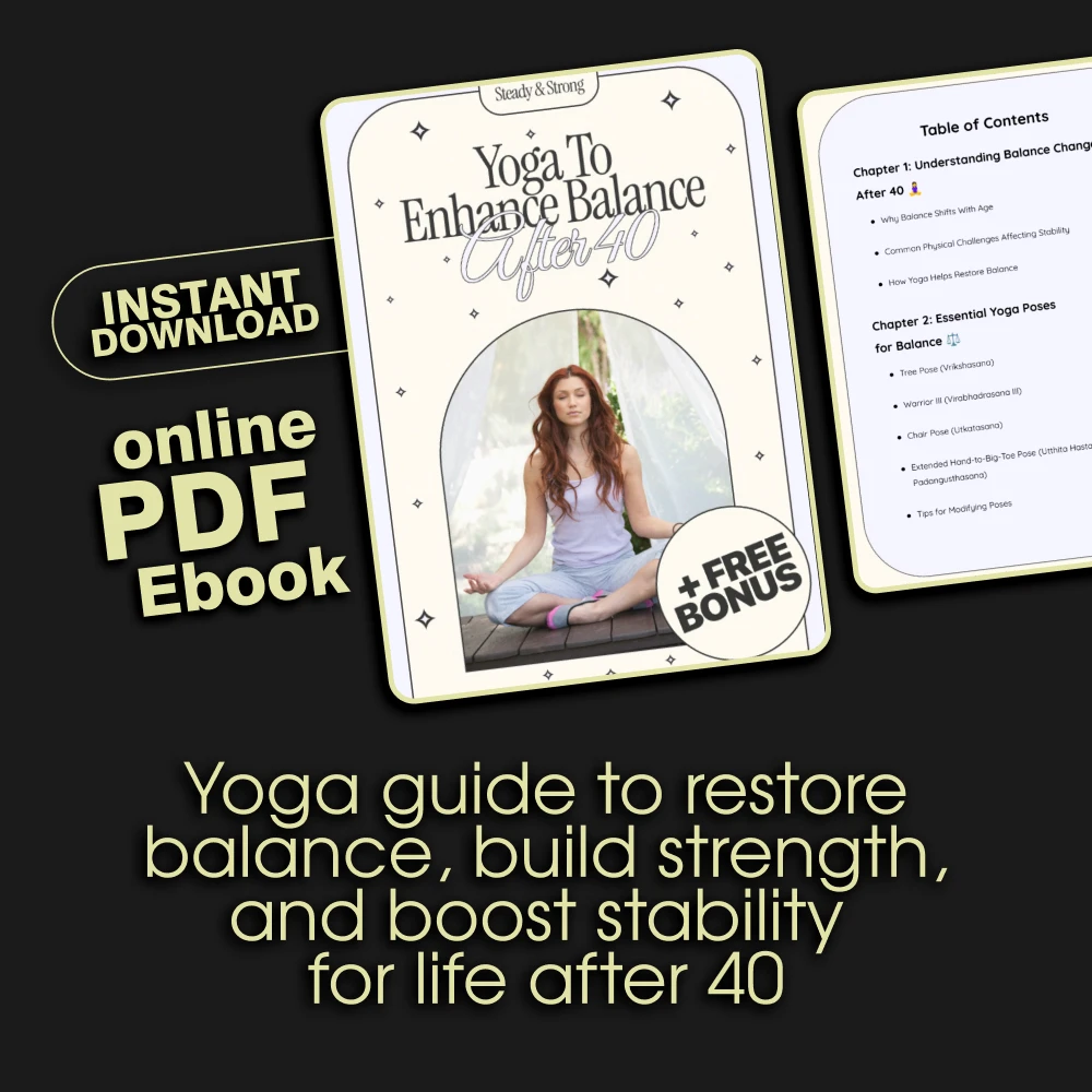 As we age, staying steady on our feet becomes more than just a matter of posture—it’s about preserving confidence, mobility, and independence. Steady & Strong: Yoga to Enhance Balance After 40 is a comprehensive digital ebook designed to guide you through simple yet powerful yoga practices that support stability, strength, and peace of mind. Perfectly tailored for those entering their 40s and beyond, this resource blends expert instruction with real-life stories to help you feel centered and secure in every step.