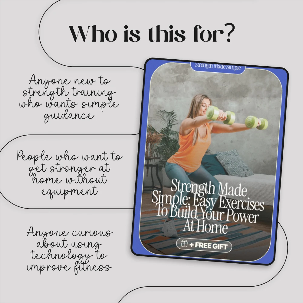 This digital download is perfect for anyone who wants to start building strength at home, whether you’re a complete beginner, someone short on time, or looking for an approachable resource to boost your confidence. Unlike other fitness eBooks, Strength Made Simple balances science, practicality, and technology, making it a modern and accessible choice for your health journey.