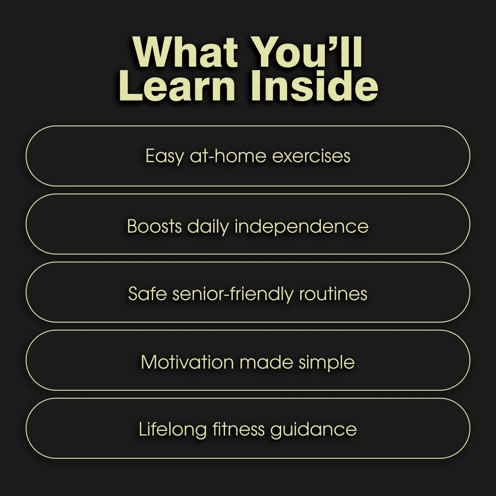 This guide is designed for seniors who want to improve strength, energy, and daily function in a safe and effective way. It’s also perfect for caregivers or family members who want to support loved ones in staying active and independent.