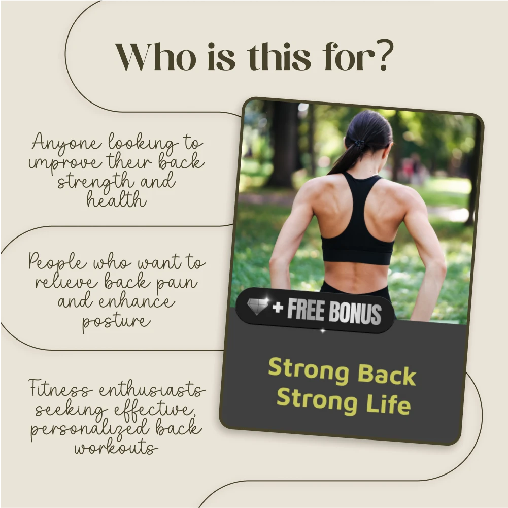 Are you ready to transform your back and experience a stronger, more powerful body? The Strong Back Strong Life digital download is your ultimate guide to achieving a pain-free, robust back that powers every part of your life. Whether you’re an athlete, a fitness enthusiast, or simply want to improve your posture and mobility, this comprehensive resource will guide you every step of the way. Packed with expert tips, essential exercises, and AI-driven workout plans, this guide is designed to help you build a back that’s not only stronger but also resilient for everyday life.
