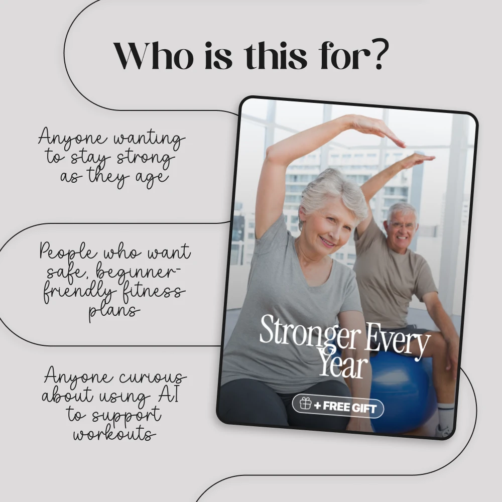 This guide is perfect for older adults who want to start strength training safely, as well as caregivers or family members seeking trusted fitness resources. It’s also ideal for anyone interested in combining traditional exercise methods with modern AI tools for extra motivation and guidance.