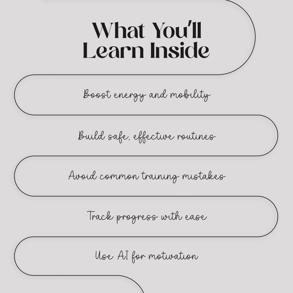 Unlike generic fitness ebooks, Stronger Every Year focuses specifically on strength training for older adults. It blends expert-backed strategies with cutting-edge AI tools, making it both practical and innovative. You’ll not only learn how to train effectively but also how to stay consistent year after year.