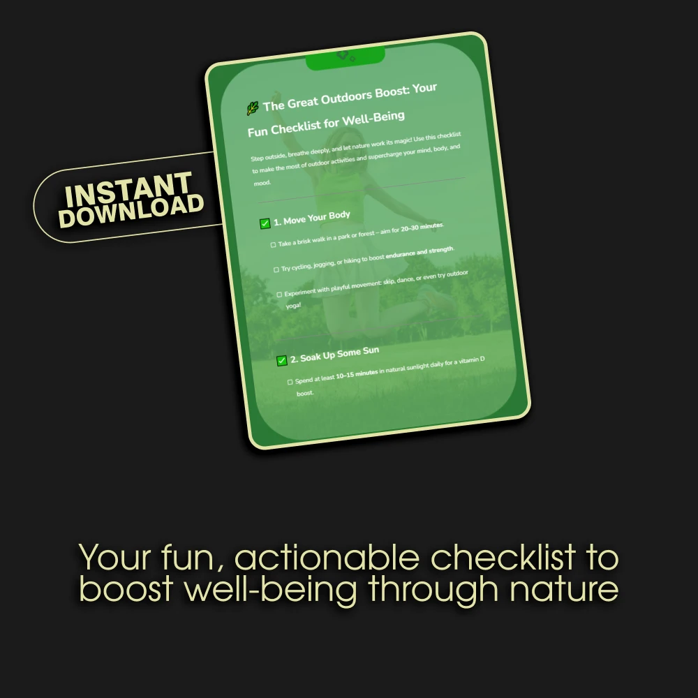 Click “Add to Cart” now to download your checklist instantly and begin discovering the profound benefits of outdoor activities for well-being today!