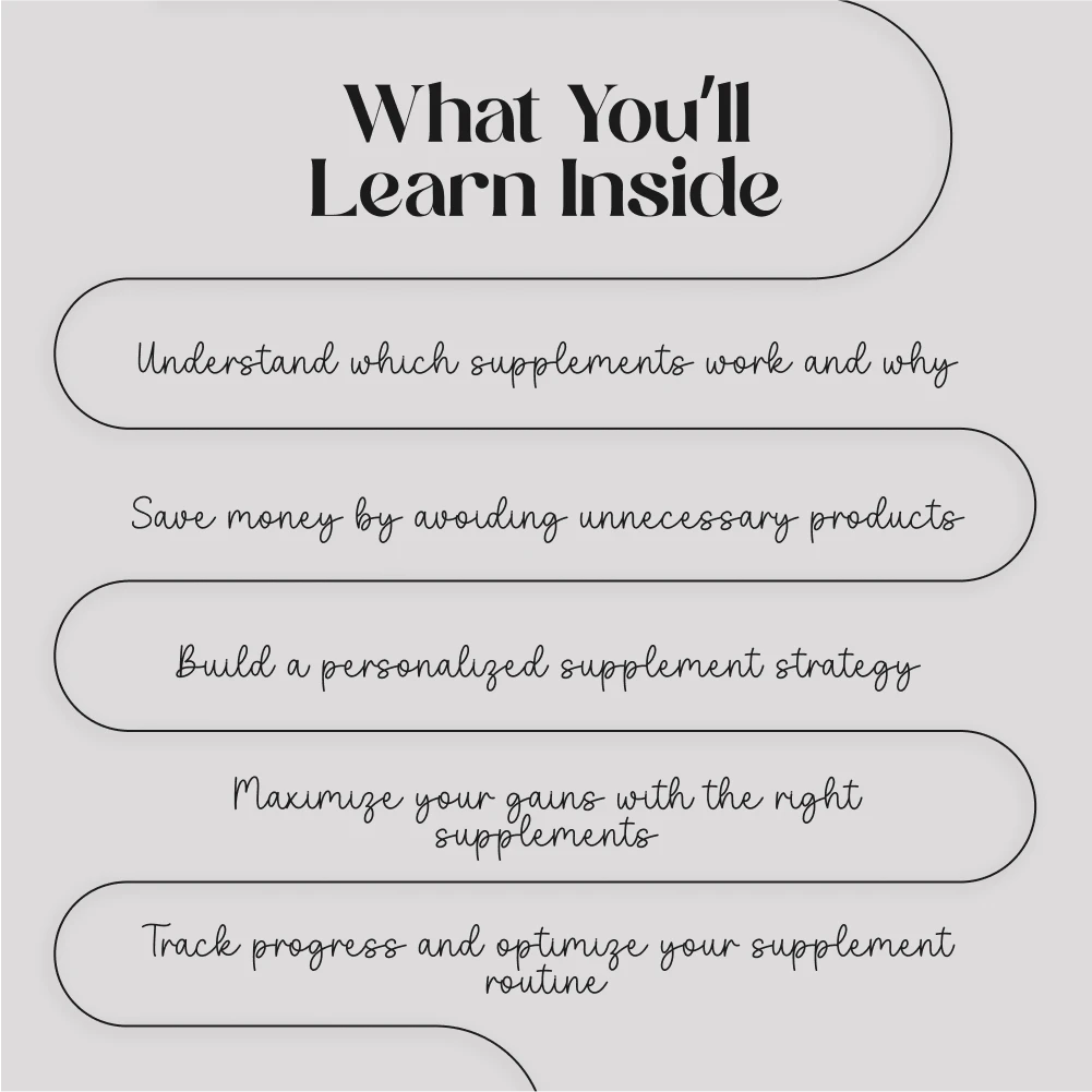 Inside this easy-to-follow guide, you’ll find science-backed advice on how to choose the right supplements, when to use them, and which ones are actually worth your time and money. From protein powders to nootropics, this guide helps you navigate it all. Plus, you’ll learn how to avoid the common mistakes most people make with supplementation, saving you both time and money.