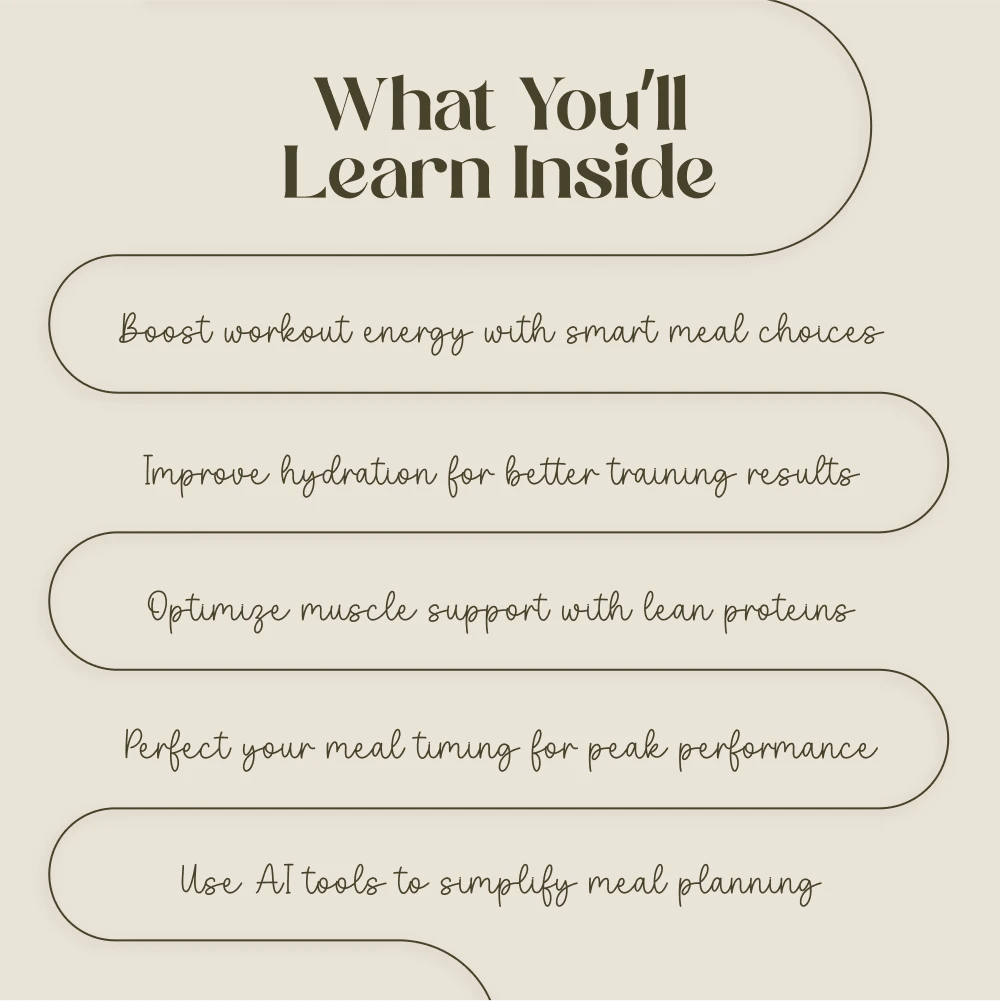 - AI Integration: Use modern AI tools to plan, track, and fine-tune your pre-workout meals and hydration.