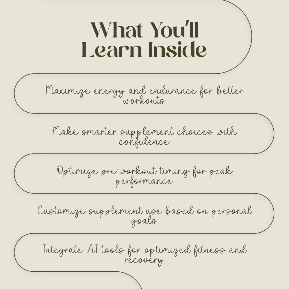 What makes this checklist different? Unlike other guides that simply offer general advice, the Pre-Workout Power-Up Checklist is a practical, actionable resource with real insights and strategies. It not only tells you what to look for in pre-workout supplements but also guides you on how to use them most effectively. Plus, it integrates the latest AI tools to help you optimize your workout plan and supplement timing.