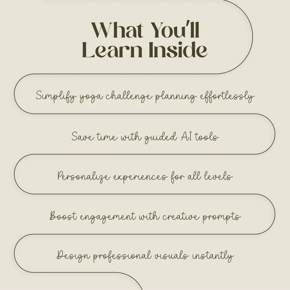 Yoga instructors, wellness coaches, content creators, and passionate yogis who want to combine creativity, structure, and mindfulness in their offerings. Ideal for anyone launching a new challenge, building a digital course, or growing an online yoga community.