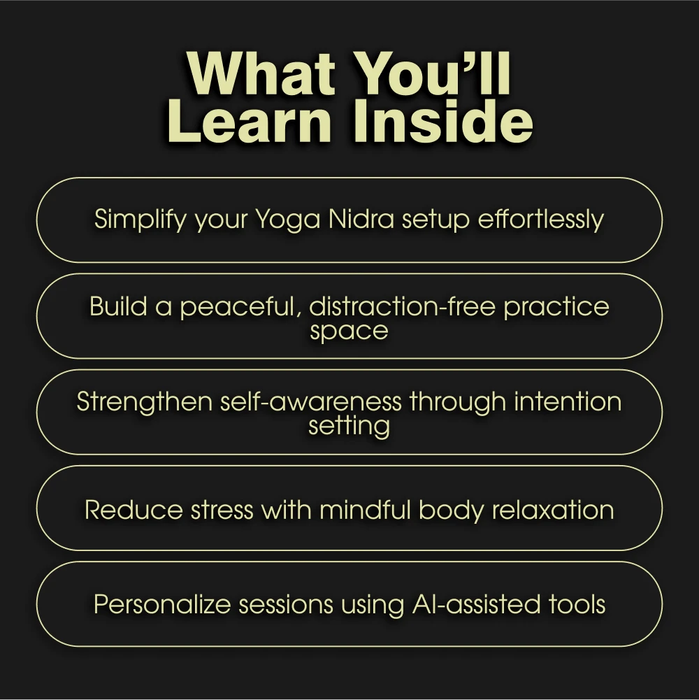 - 🤖 Bonus Tool: AI-Assisted Relaxation: Explore creative ways to use AI tools to enhance your Yoga Nidra experience.