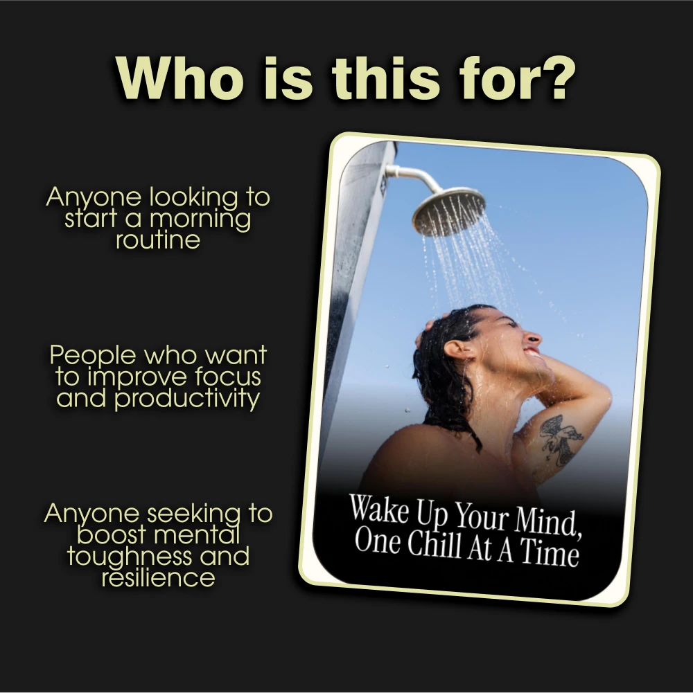 Get your hands on the “Wake Up Your Mind, One Chill at a Time” checklist and start reaping the benefits of cold showers today. With clear instructions, practical tips, and a structured approach, you’ll be able to integrate this powerful habit into your routine with ease. Download now and feel the difference cold showers can make in your mornings—and your life!