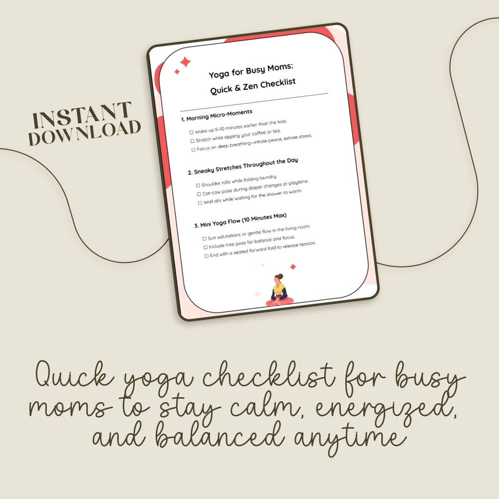 Give yourself the gift of balance, calm, and strength with this instant digital download. Start your journey to a calmer, more mindful you—no matter how busy life gets. Download Yoga for Busy Moms: Quick & Zen Checklist now and bring peace into your everyday moments.