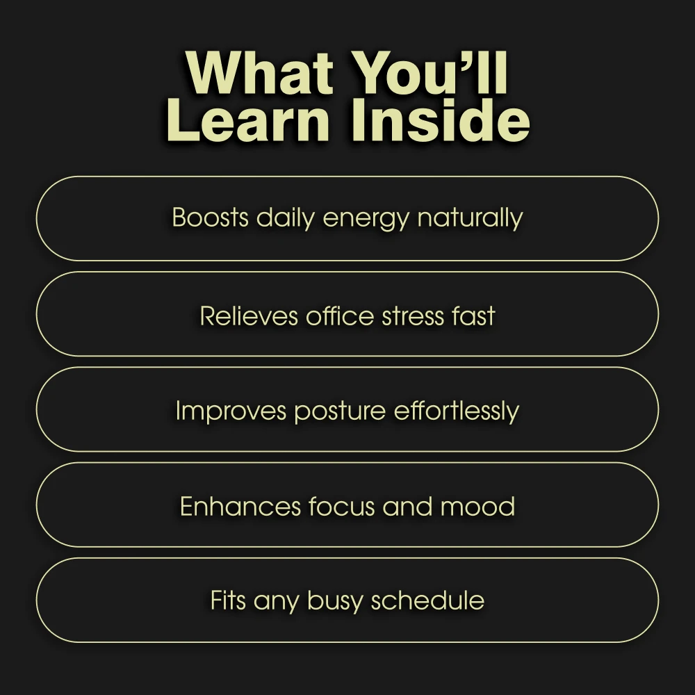 - Designed for Real People: Created specifically for yoga for office workers, with stretches you can do at your desk.