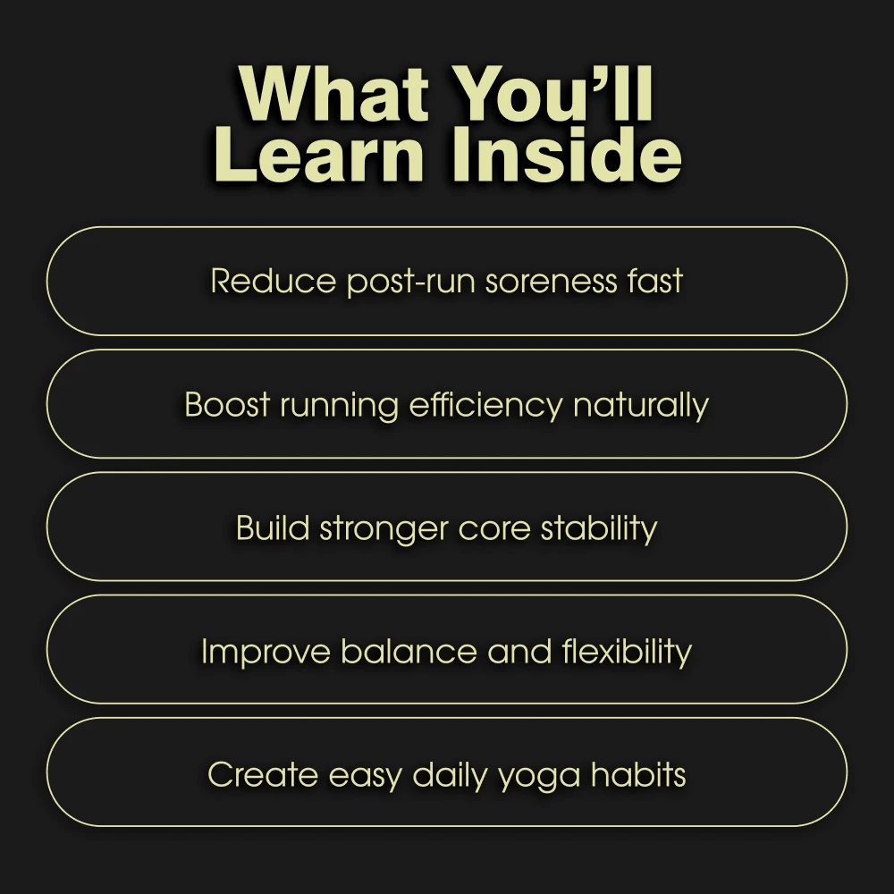 Unlike generic yoga guides, this resource is specifically tailored to the needs of runners. It blends expert-recommended poses, structured habit-building steps, and modern AI guidance to make your yoga practice smarter and more effective. With clear action steps and a focus on results, you’ll know exactly how yoga supports your running performance.