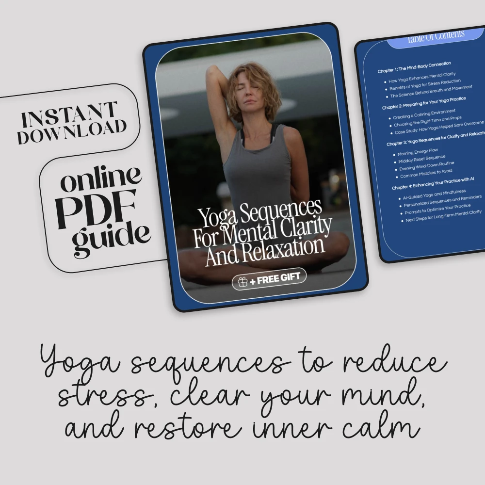 Bring balance to your busy mind and body with Yoga Sequences for Mental Clarity and Relaxation, a beautifully structured digital guide designed to help you reset, recharge, and release stress anytime you need it. Whether you’re a beginner or a seasoned practitioner, this guide offers step-by-step yoga sequences that fit seamlessly into your day, helping you enhance focus, improve relaxation, and find peace within minutes. With a blend of mindful movement, breathwork, and even AI-powered practice tips, this resource is crafted to support your long-term well-being and clarity of mind.