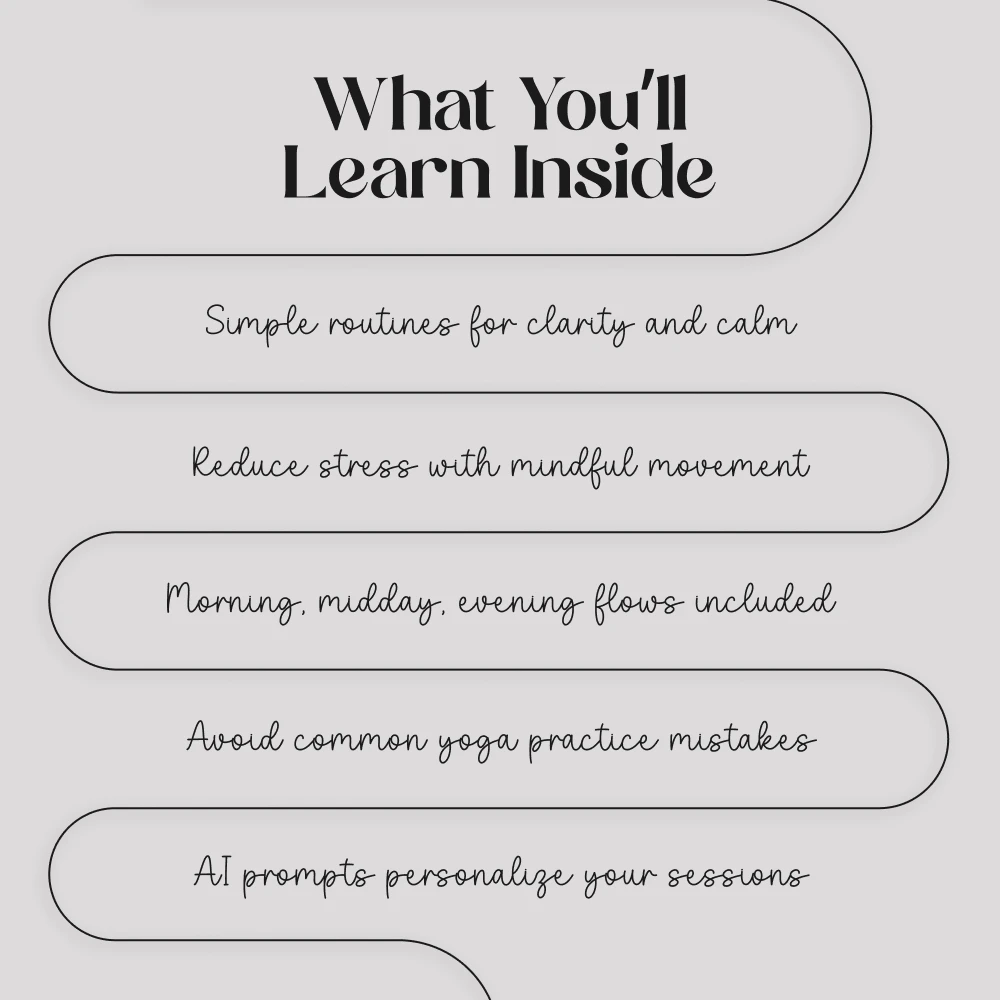 - Chapter 4: Enhancing Your Practice with AI – guided yoga tools, personalized reminders, prompts, and long-term clarity strategies